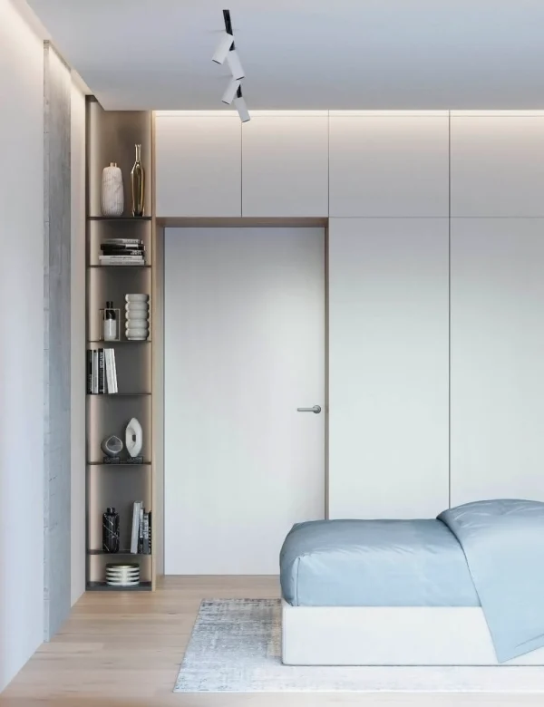Квартира исполнена в современном минималистическом стиле. В площадь 65 м2 уместились – объединенная кухня-гостиная, мастер спальня, гостевая спальня и две ванные комнаты. Главным пожеланием заказчиков было создать максимально светлое пространство.