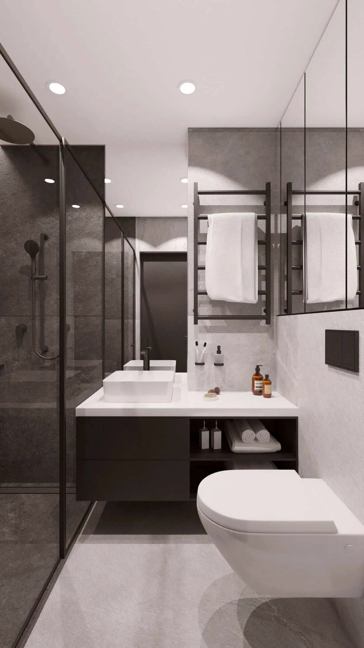 Также особенностью проекта выступают необычный выбор керамогранитной плитки в общей зоне и ванной комнате, конечно же по всей квартире использовали теплые полы.